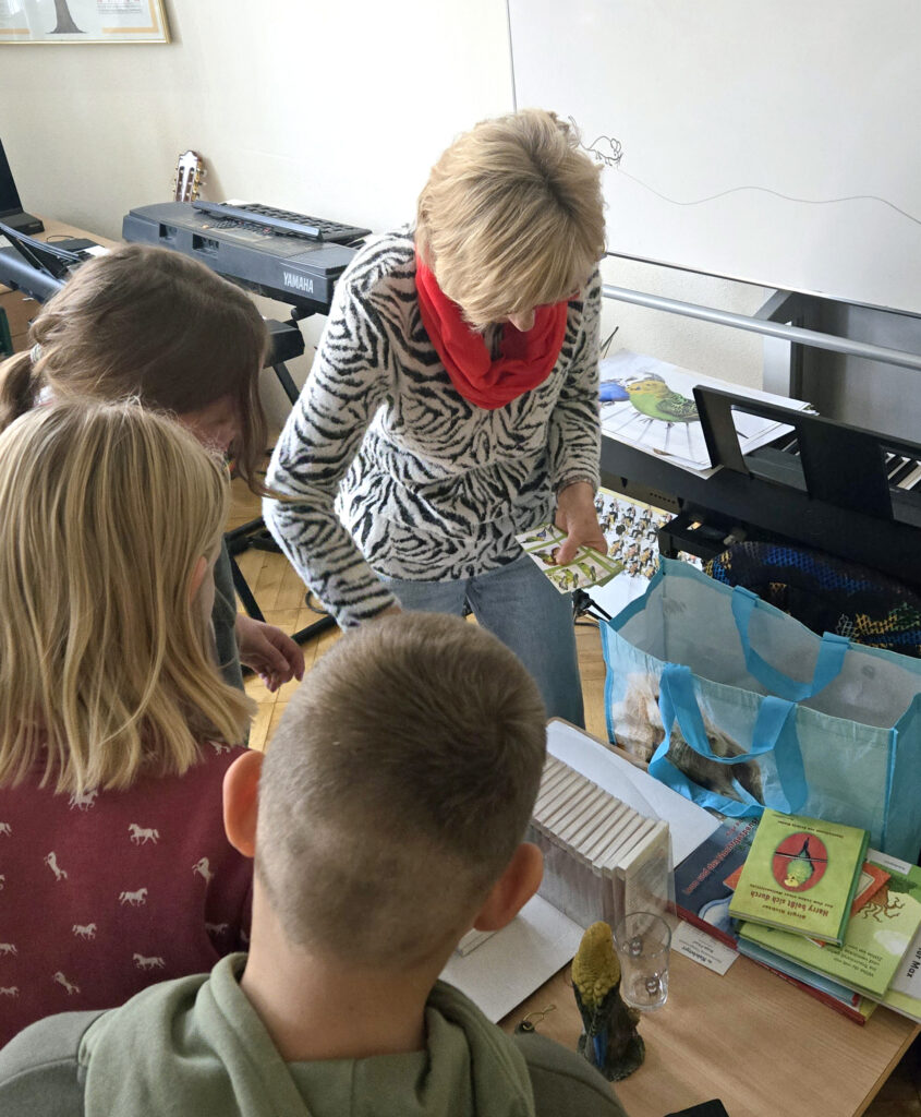 Als zweite Gruppe hörte die Klasse 3b eine Geschichte von Wellensittichen. Es war spannend und lehrreich. Viele Dinge lernten die Kinder über das Leben der Wellensittiche. Besonders schön sind die Poster und Lesezeichen, die die Klasse an eine interessante Stunde erinnern. Vielen Dank dafür. Christian Lange (stellv. Schulleiter/Lehrer)